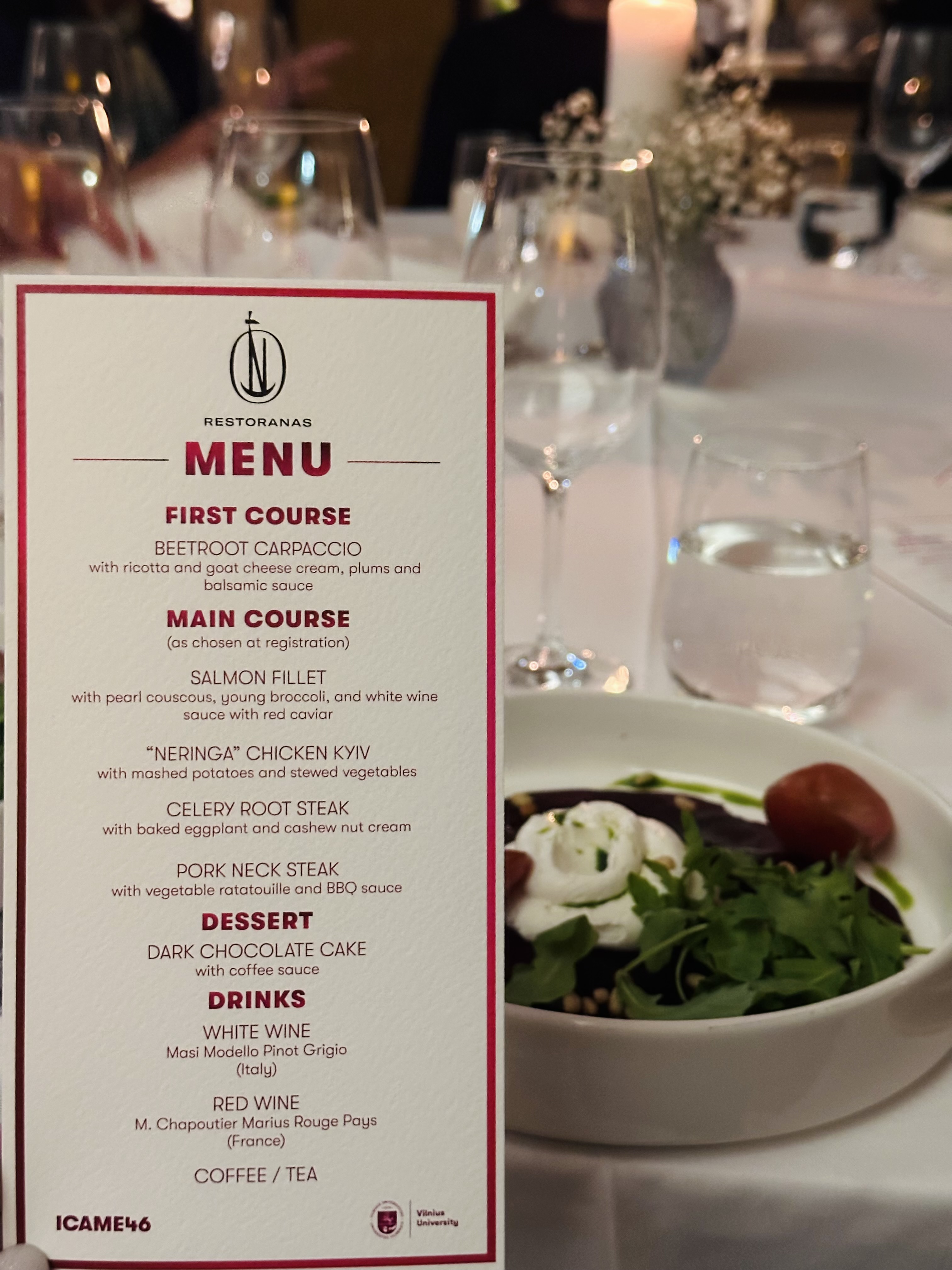 On Friday evening, 20 June 2025, ICAME 46 participants gathered at the iconic Restaurant “Neringa” for the conference dinner – an unforgettable evening that blended culinary enjoyment with cultural history.